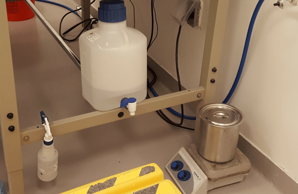 This example here is a location for an operator to sit on the yellow plastic steps and maintain a pot full of water held at a specific temperature. Why is the heater on the floor? Why is the operator sitting for hours in this position? Who thought it was a good idea to balance 3 gallons of water on a rail under a table next to a power strip? The answers to all of these questions came down to one thing – doing whatever it took to make production. It did not take into consideration safety (there are 5 safety issues in this picture), ergonomics, or work flow. So look at your area. Is it safe? Are there power strips everywhere? Is it well lit? Is there fire protection, first aid, and an exit sign?