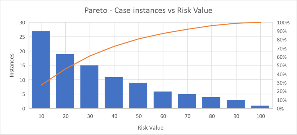 The next question is around the scale difference. The thresholds shown on the 10/10 chart are at risk values of 13 and 50 – that results in the mid-range band shown. Why aren’t the values set at 30 and 70? Or 20 and 80? Those seem logical. The reason is because we are not assessing the value, we are considering the frequency of population. First, observe that if a threshold of 30 and 70 was introduced the results would show that more than 50% of all cases become Minor. It means that a case where the severity is 10 (death, in the case of the medical device world) and an occurrence of 3 (occasional) means no consideration of safety is needed. That defies logic. If death is the question, some study must be expected. On the other end of that scale the only things that would be considered critical is when it happens more often than 80% of the time and death must also be on the line. Also a logic challenging response.